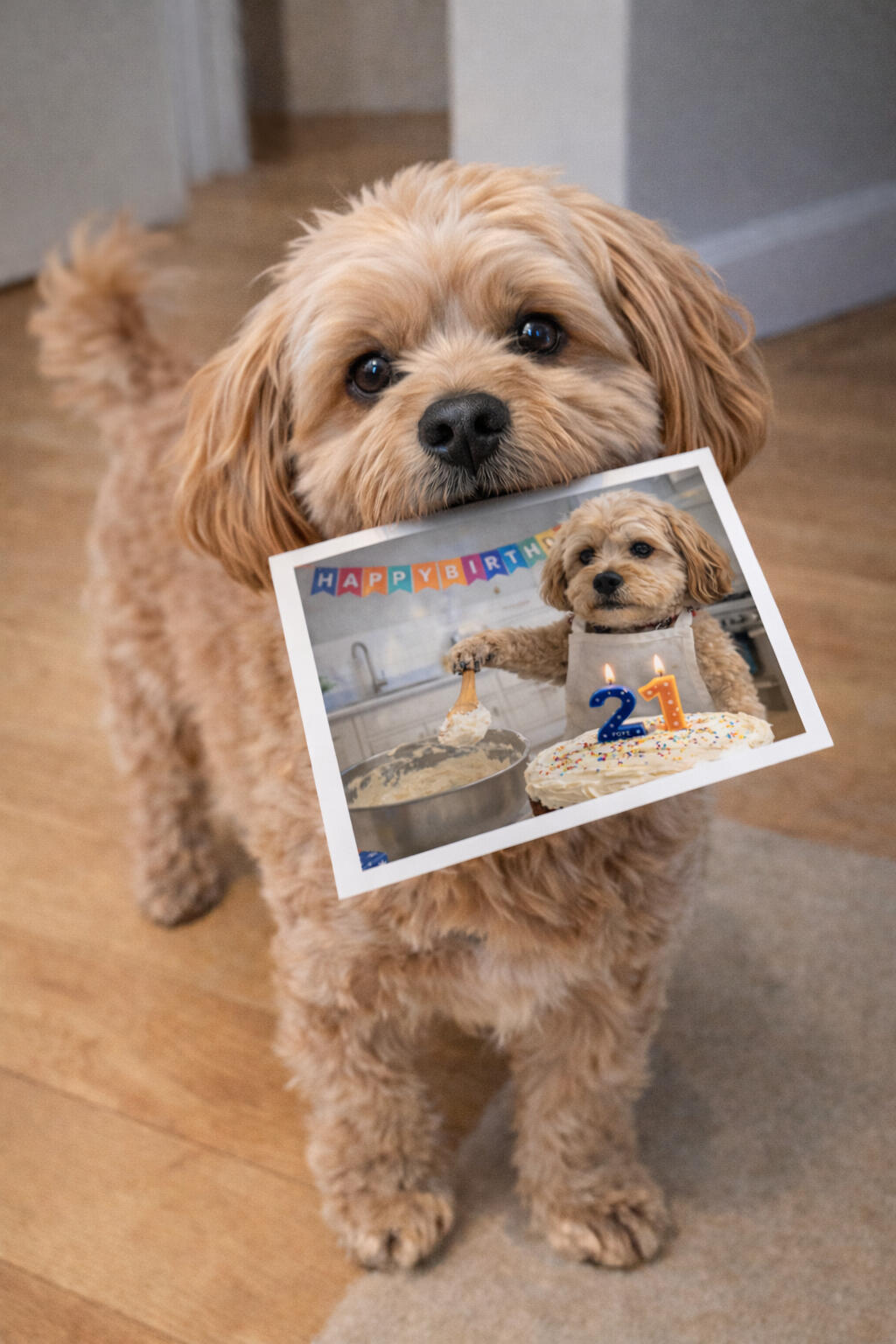 Turn your pet into celebration art. Printed and mailed anywhere in 3 days.